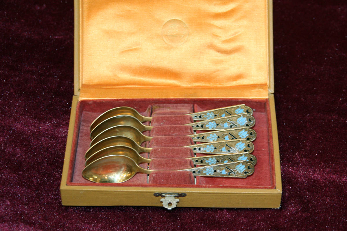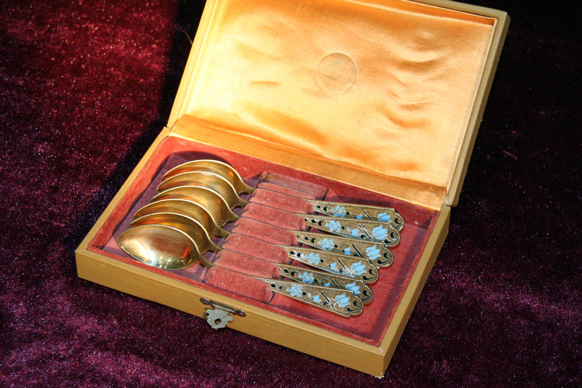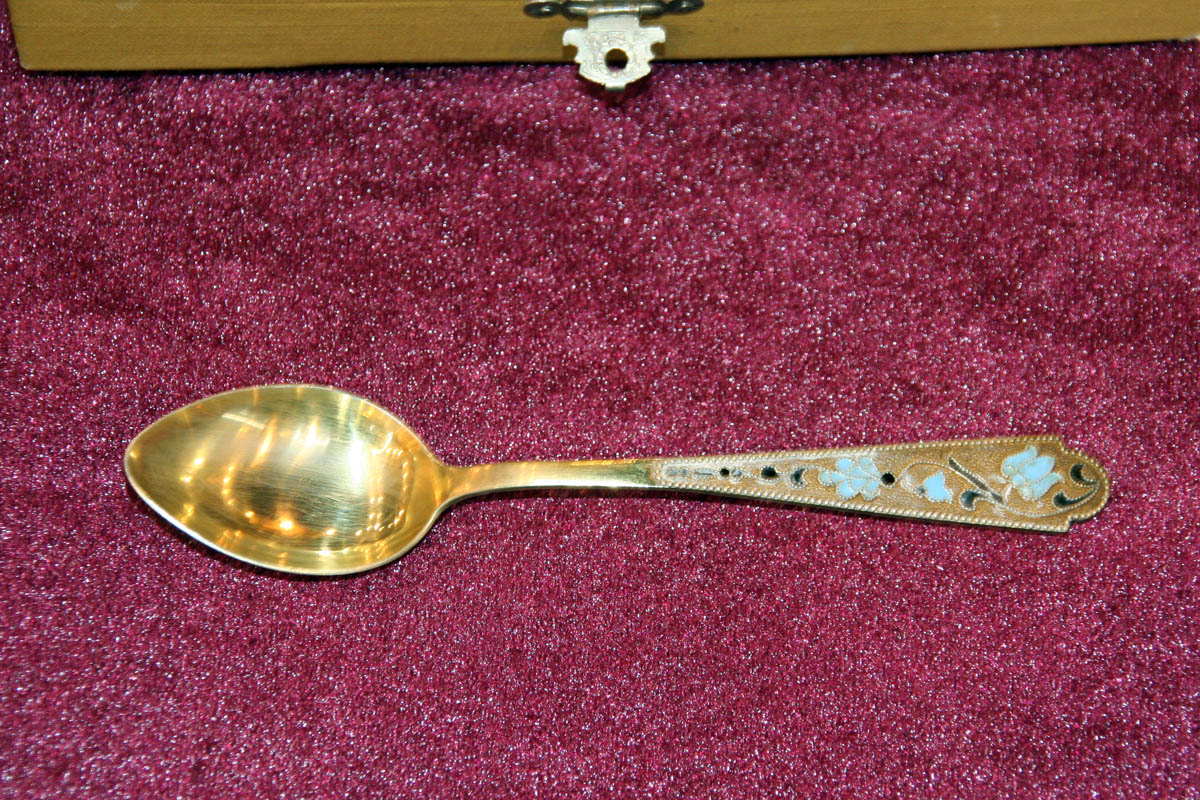 подарочный набор чайные ложки, чайные ложки Росювелирторг, чайные ложки серебро, чайные ложки позолота, чайные ложки эмали, чайные ложки антиквариат