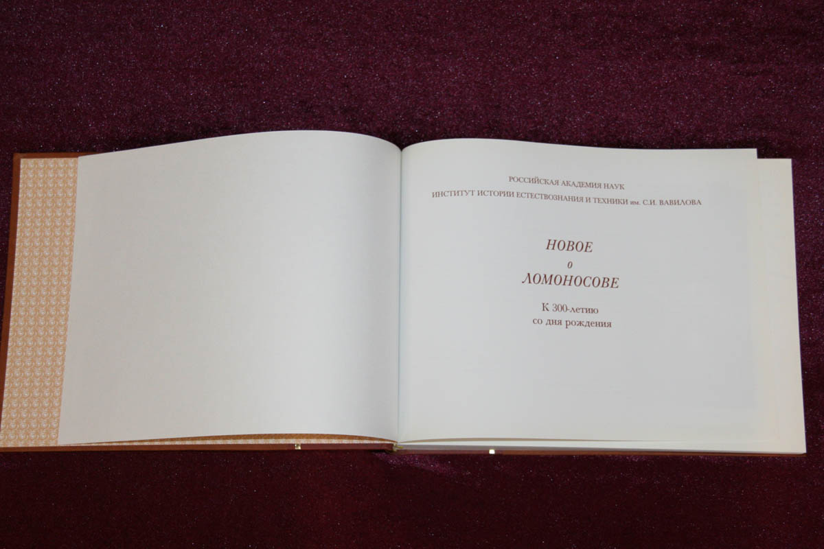 подарочная книга, книга в кожаном переплете, книга Новое о Ломоносове, к 300 летию со дня рождения Ломоносова