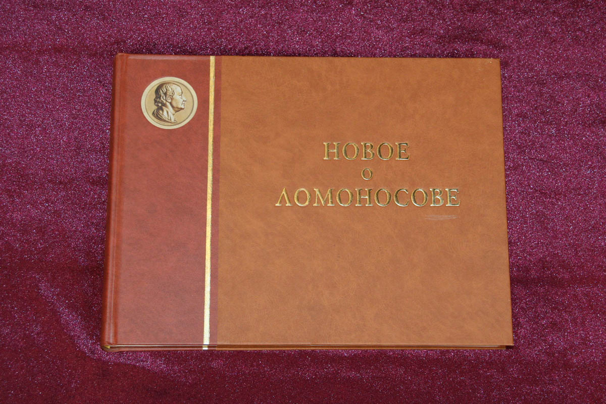 подарочная книга, книга в кожаном переплете, книга Новое о Ломоносове, к 300 летию со дня рождения Ломоносова