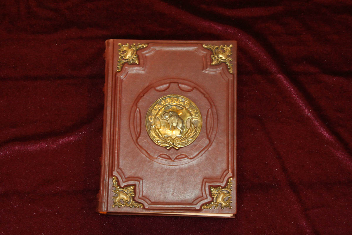 авторский кожаный переплет с бронзой. Собрание сочинений А.П. Сабанеев, 2010г.